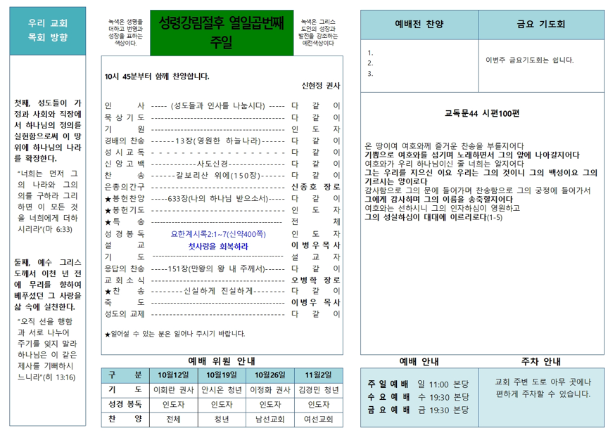 2025.10.5 운암동교회 주보