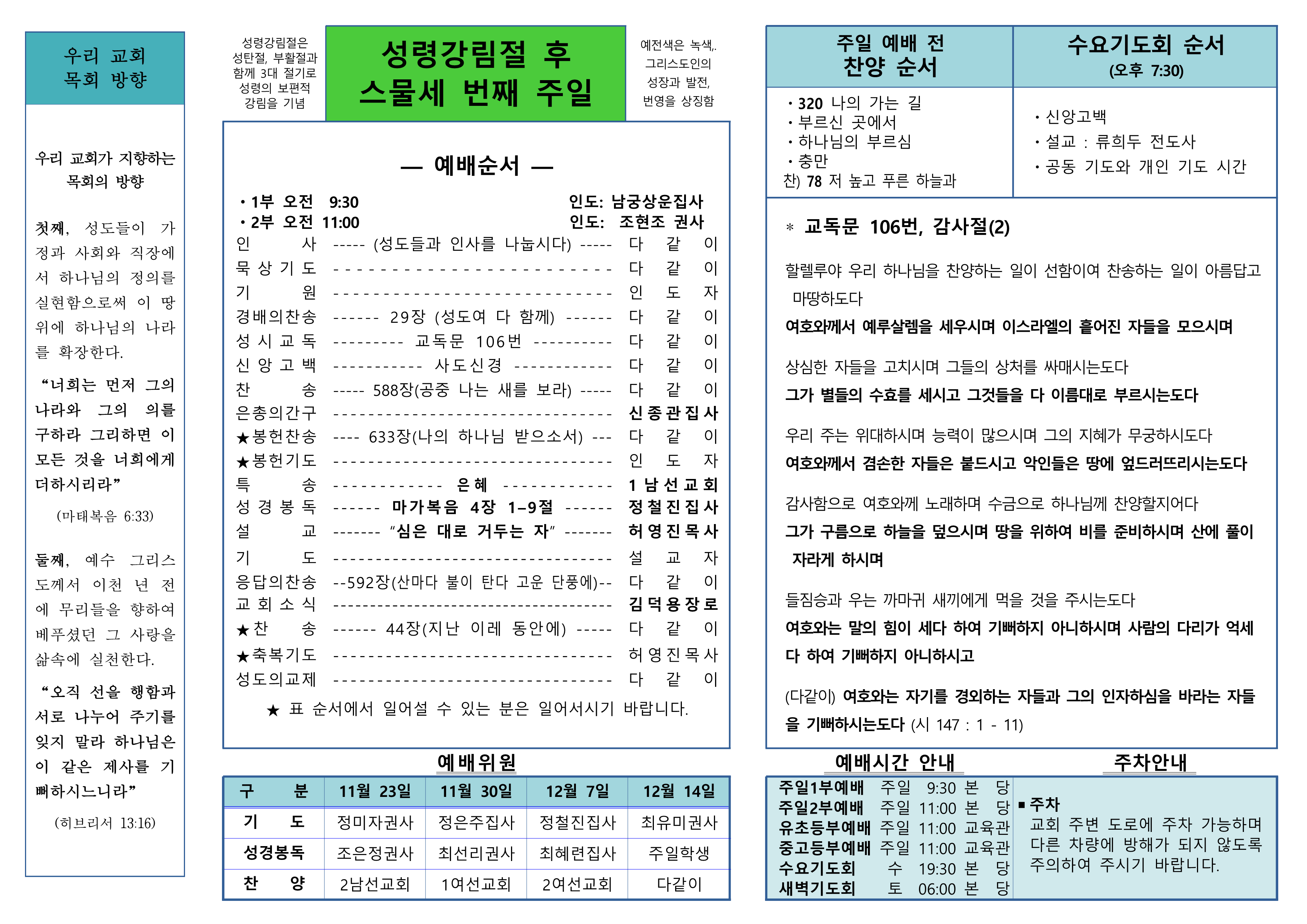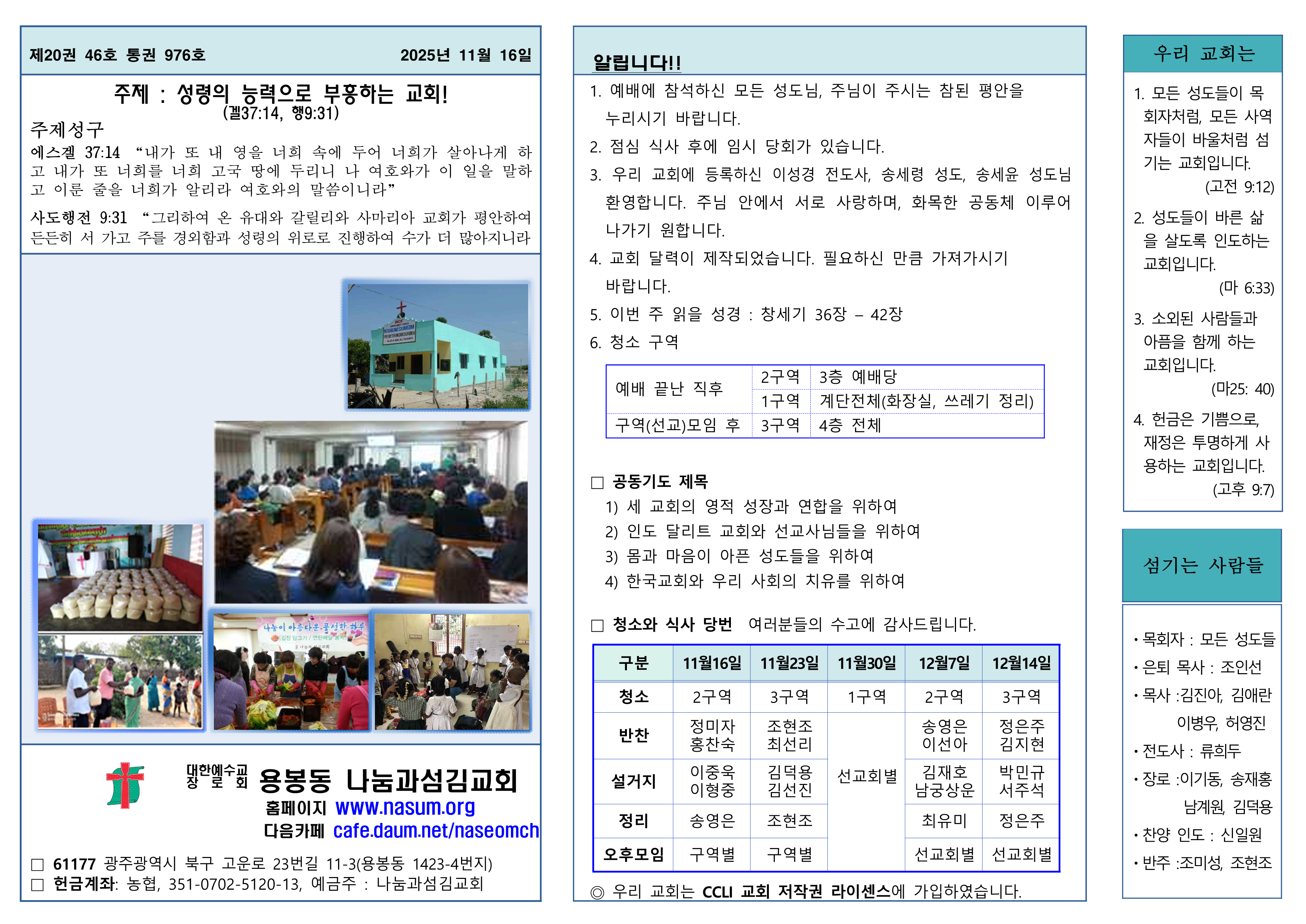 2025년 11월 16일 용봉동 교회 주보