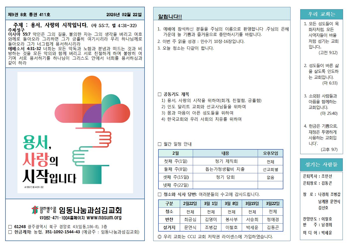 장소: 나눔과섬김교회(운암동)