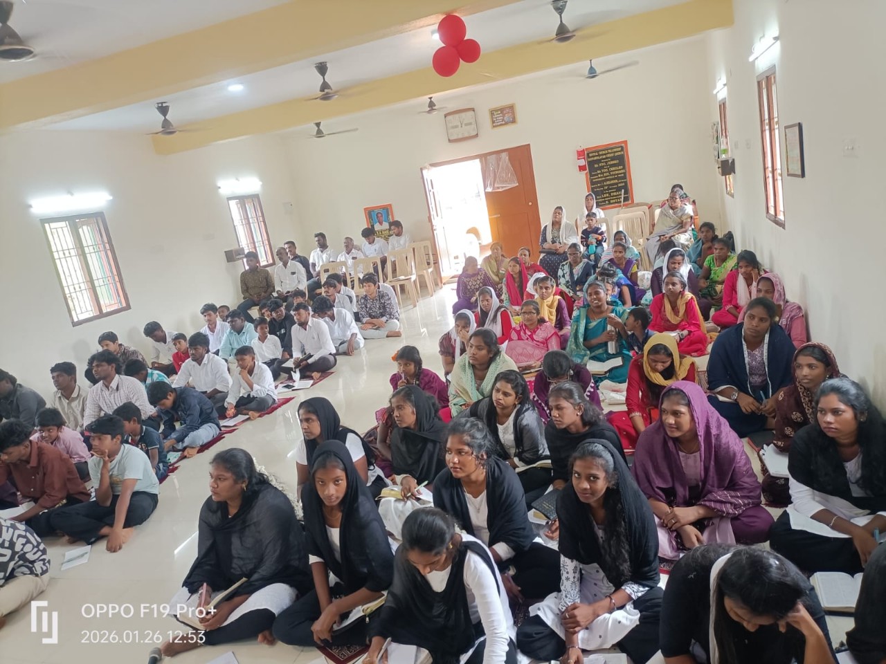 1월 26일, 인도달릿교회들이 연합으로 에구바르팔라얌교회에서 하루 일정의 청년 집회를 개최하였습니다.