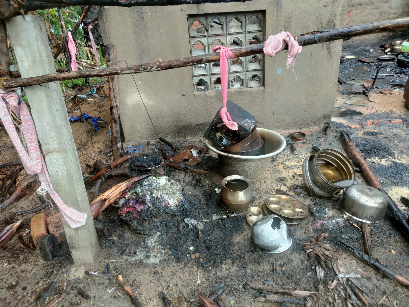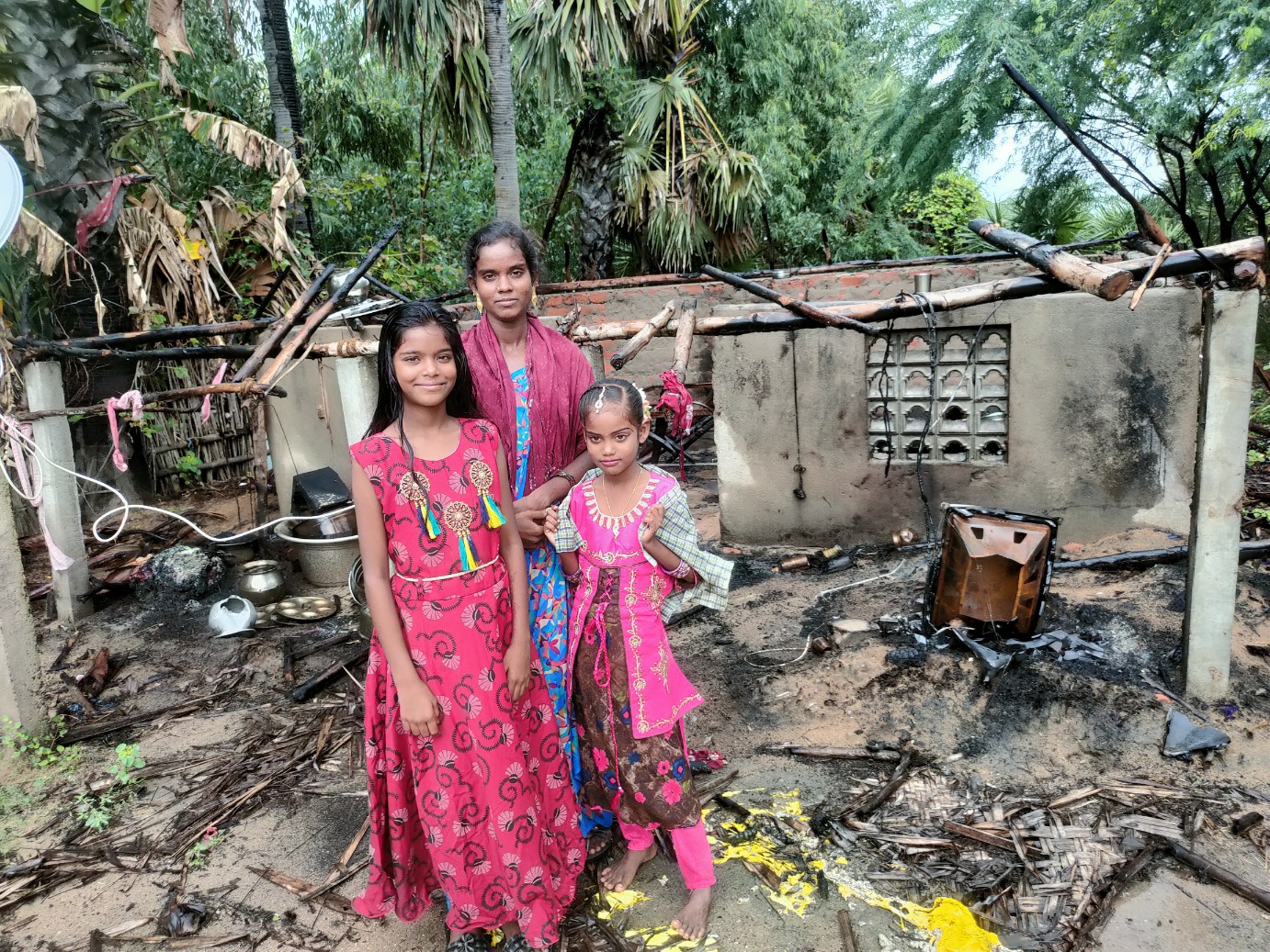 안타깝게도 순남부꿀롬교회의 Bhavani 자매님과 딸들이 살던 집이 힌두교 신자인 그녀의 남편에 의해 불탔다고 합니다.