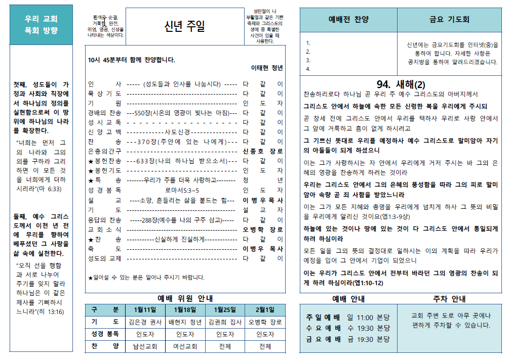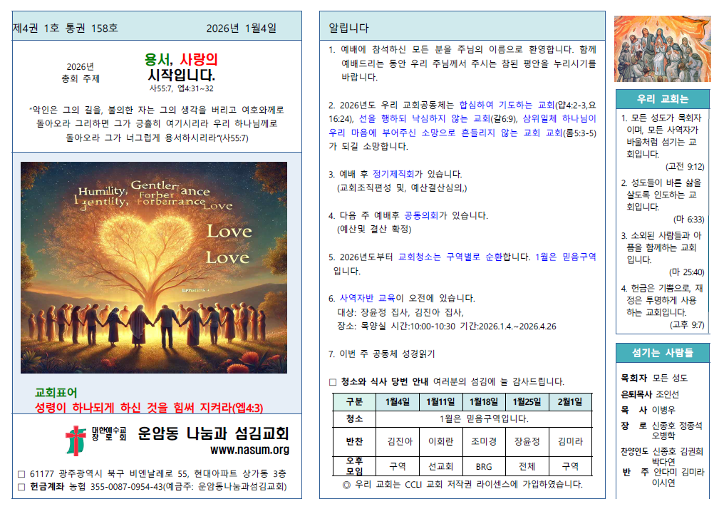 2026.1.4 운암동교회 주보