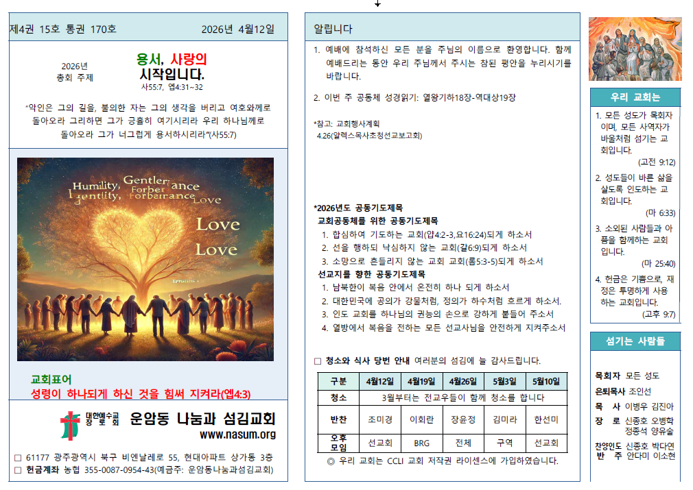 2026.4.12. 운암동교회 주보