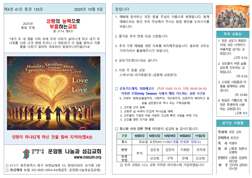 2025.10.5 운암동교회 주보