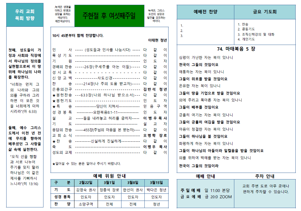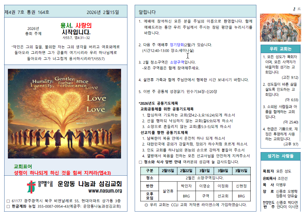 26.2.15. 운암동교회 주보