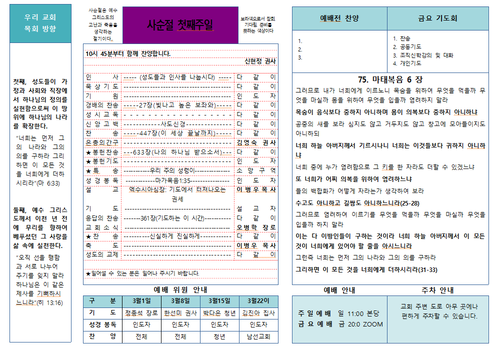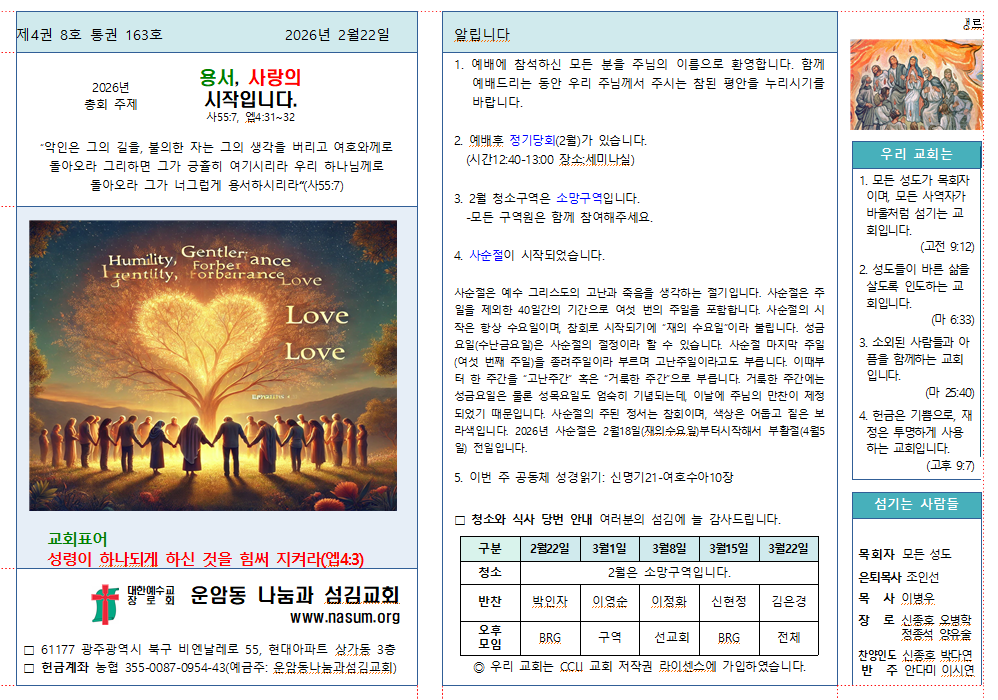 2026.2.22. 운암동교회 주보