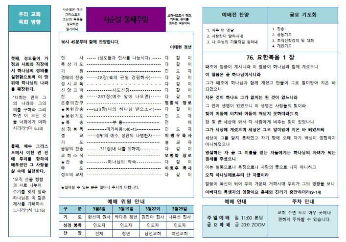 2026.3.1. 운암동교회 주보